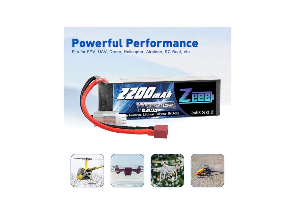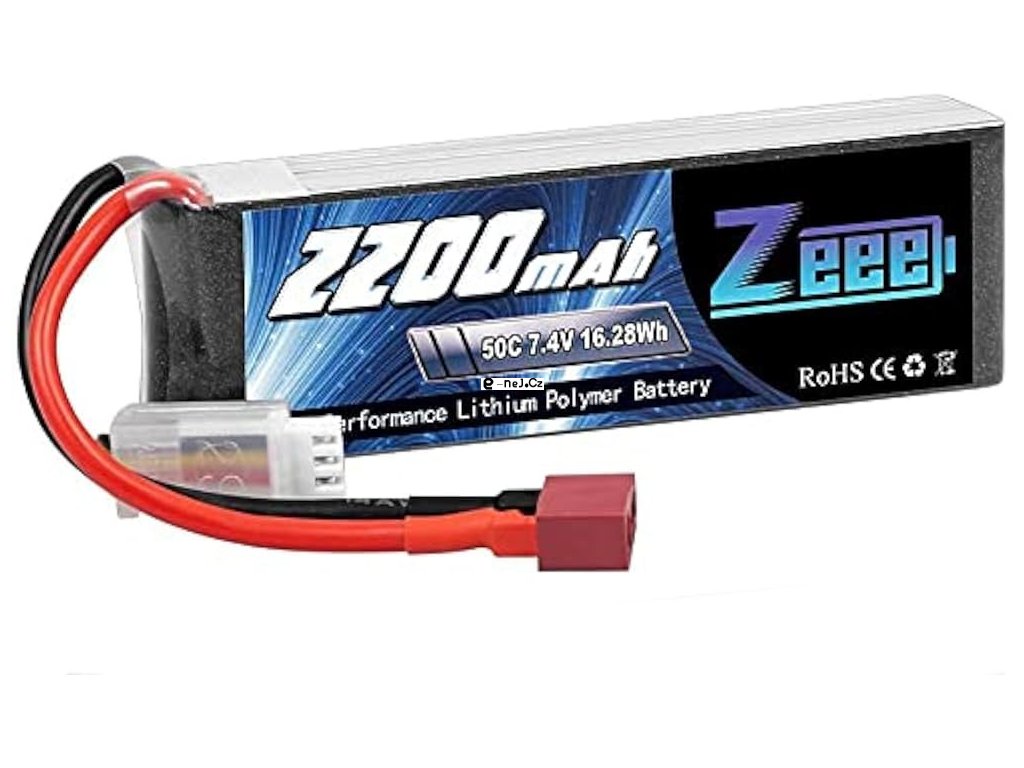 Dvoučlánková pohonná Li-Pol baterie s napětím 7.4V o kapacitě 2200mAh s vybíjecím proudem 50C.